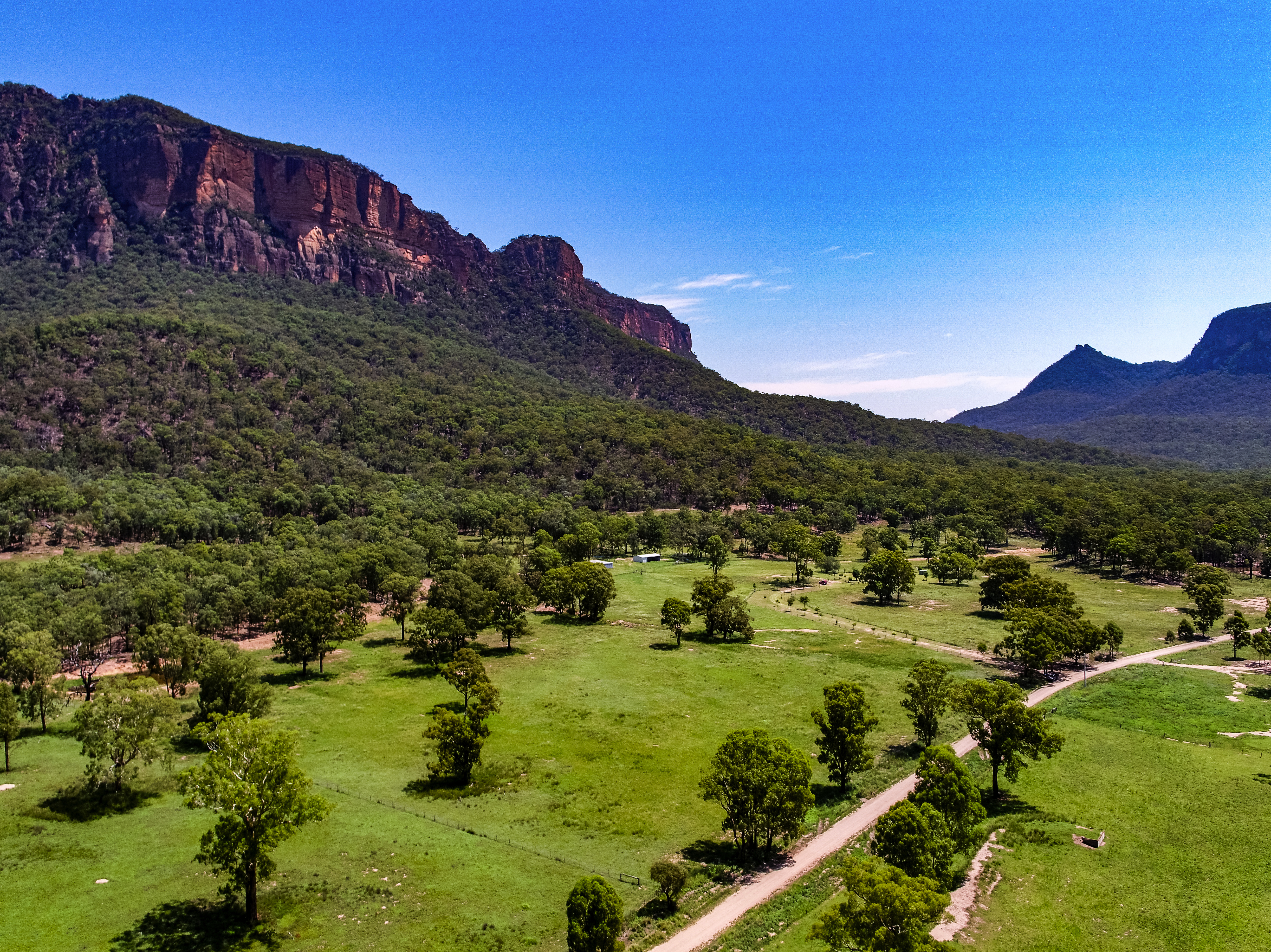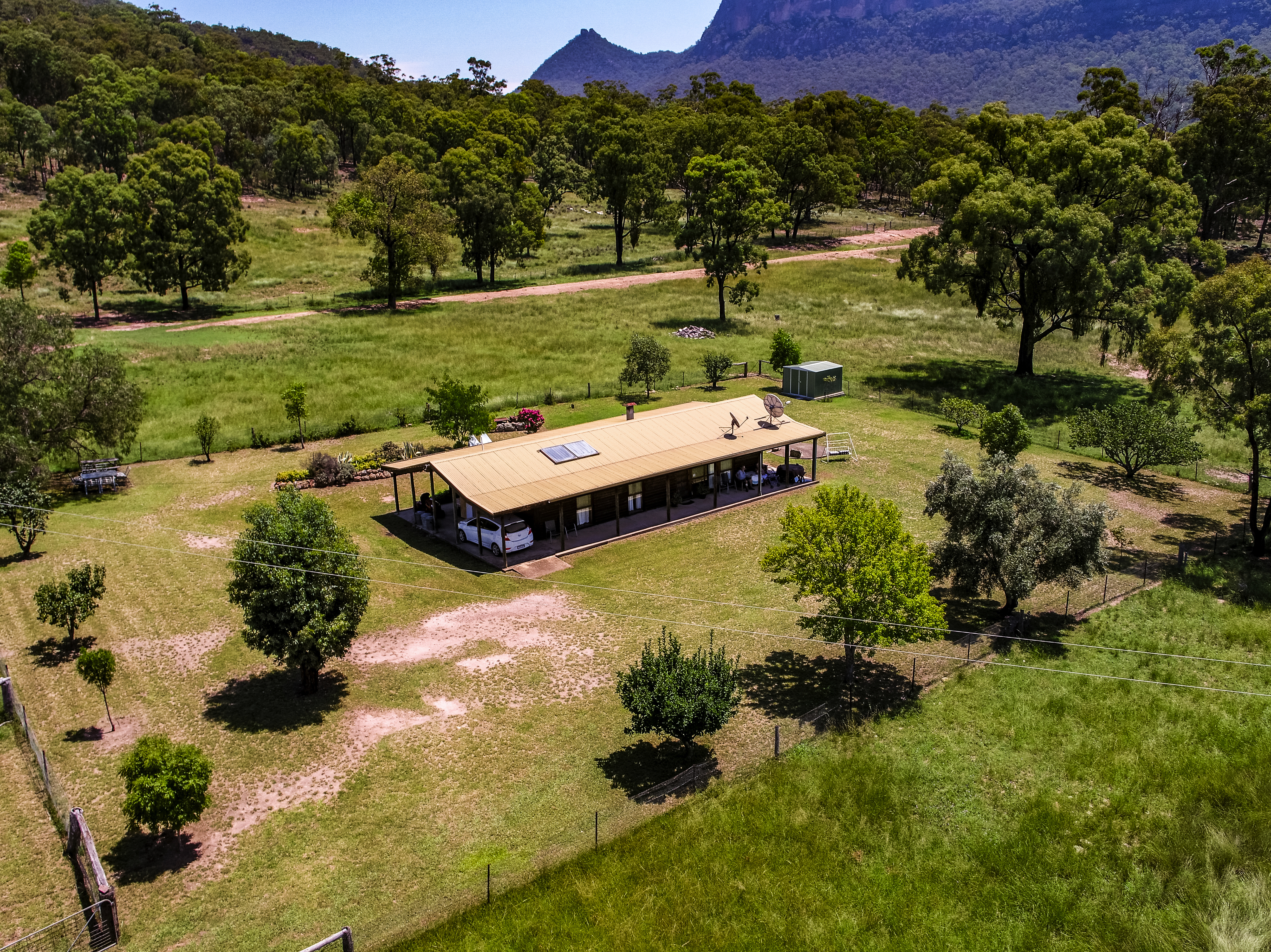Livestock handling facilities for cattle and sheep/goats are on farm and functional. Shedding includes a 12mX7m shed with lock up bay, connected to mains power and a large hay shed for machinery storage and fodder. The property is very securely fenced into 7 paddocks for livestock containment and kangaroo exclusion. “WAATINGA” sits under huge escarpment of sandstone and looks north over the valley floor. It catches rain into 4 dams and vendors quote 30 inch rainfall for the last 18 years. Full TV and Wifi service is connected. The location speaks for itself. Truly stunning!