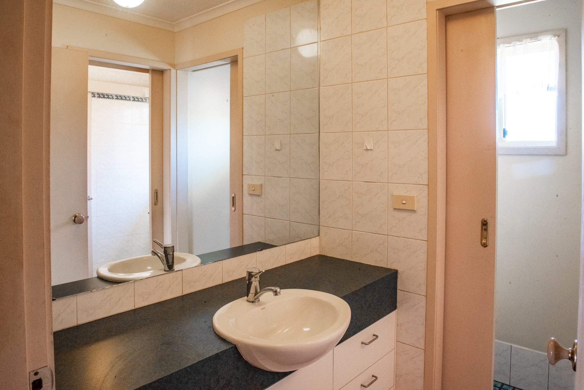 • Three-way bathroom design with separate toilet and internal laundry
